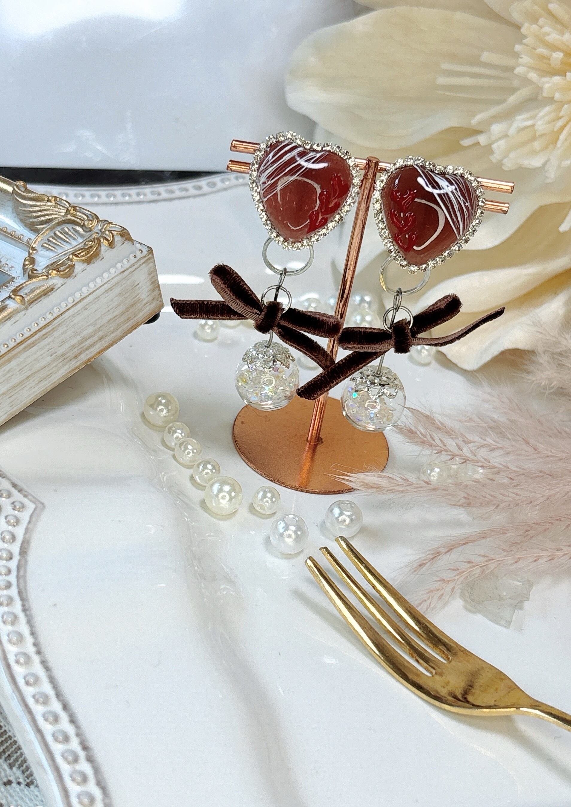 リボン・きらきらガラスドームの揺れるチャームがポイント❁⃘*.゚